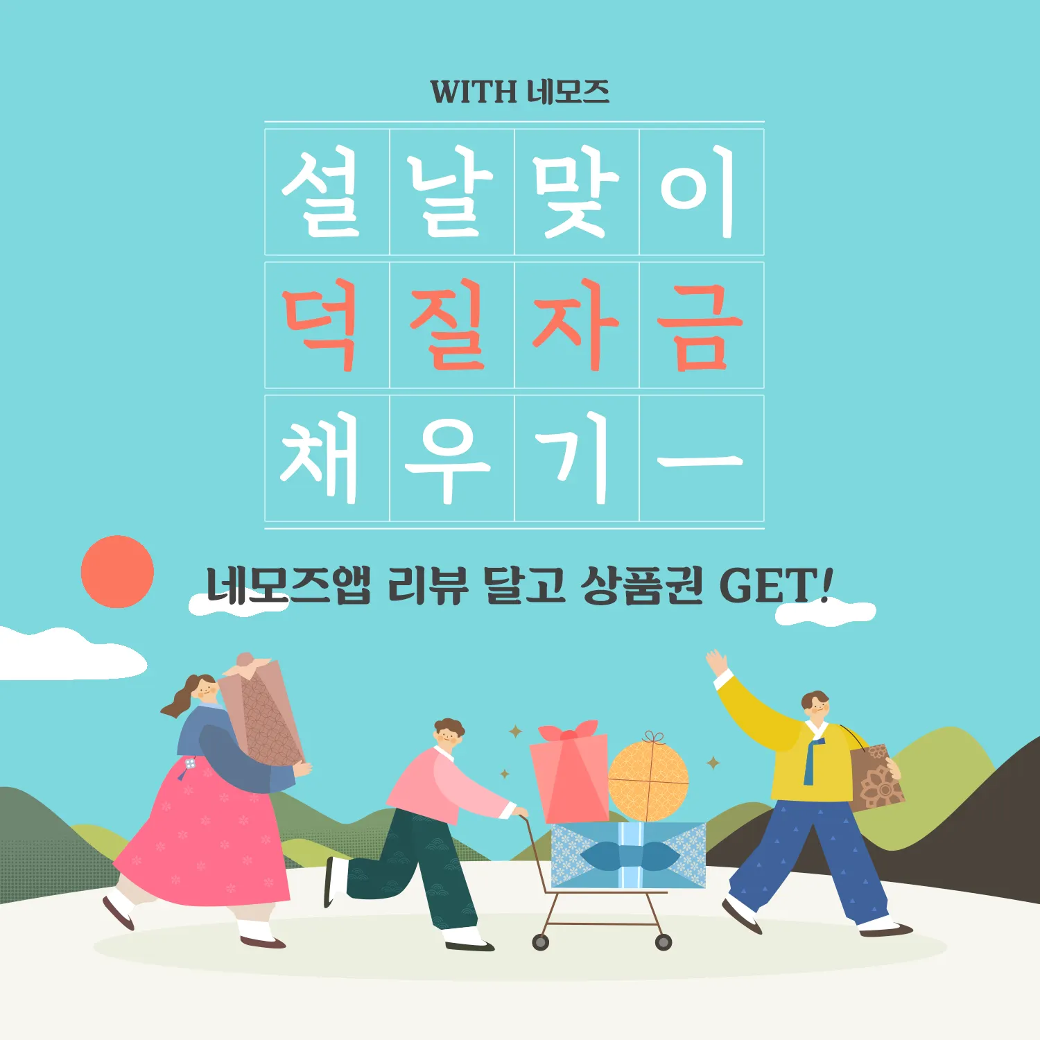 설 연휴를 맞아 조금이라도 주신 사랑을 돌려드리고자 네모즈 앱 리뷰 이벤트를 진행하려 합니다.
